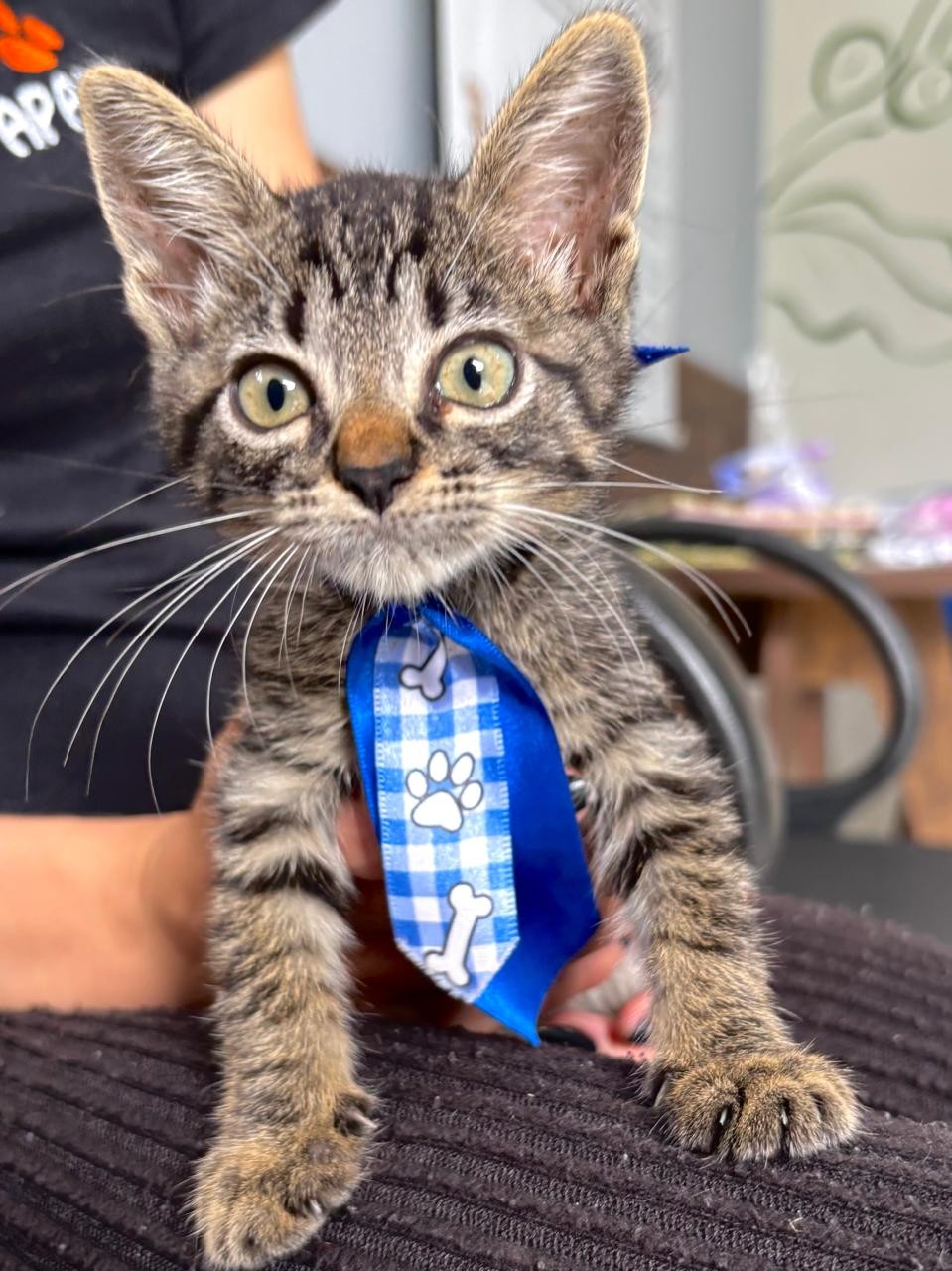 Um gatinho de aproximadamente 2 meses, extremamente dócil e cheio de carinho para dar.