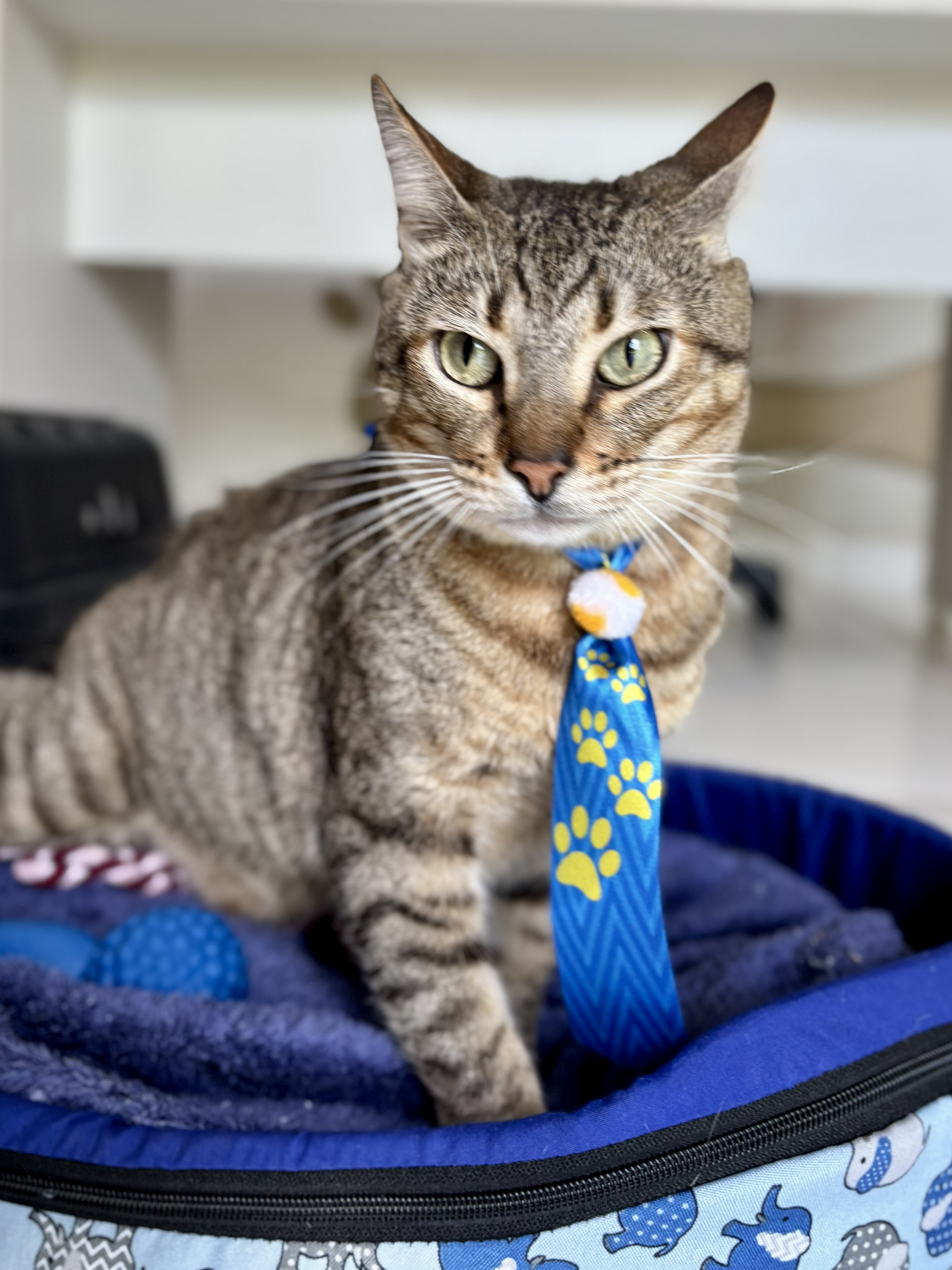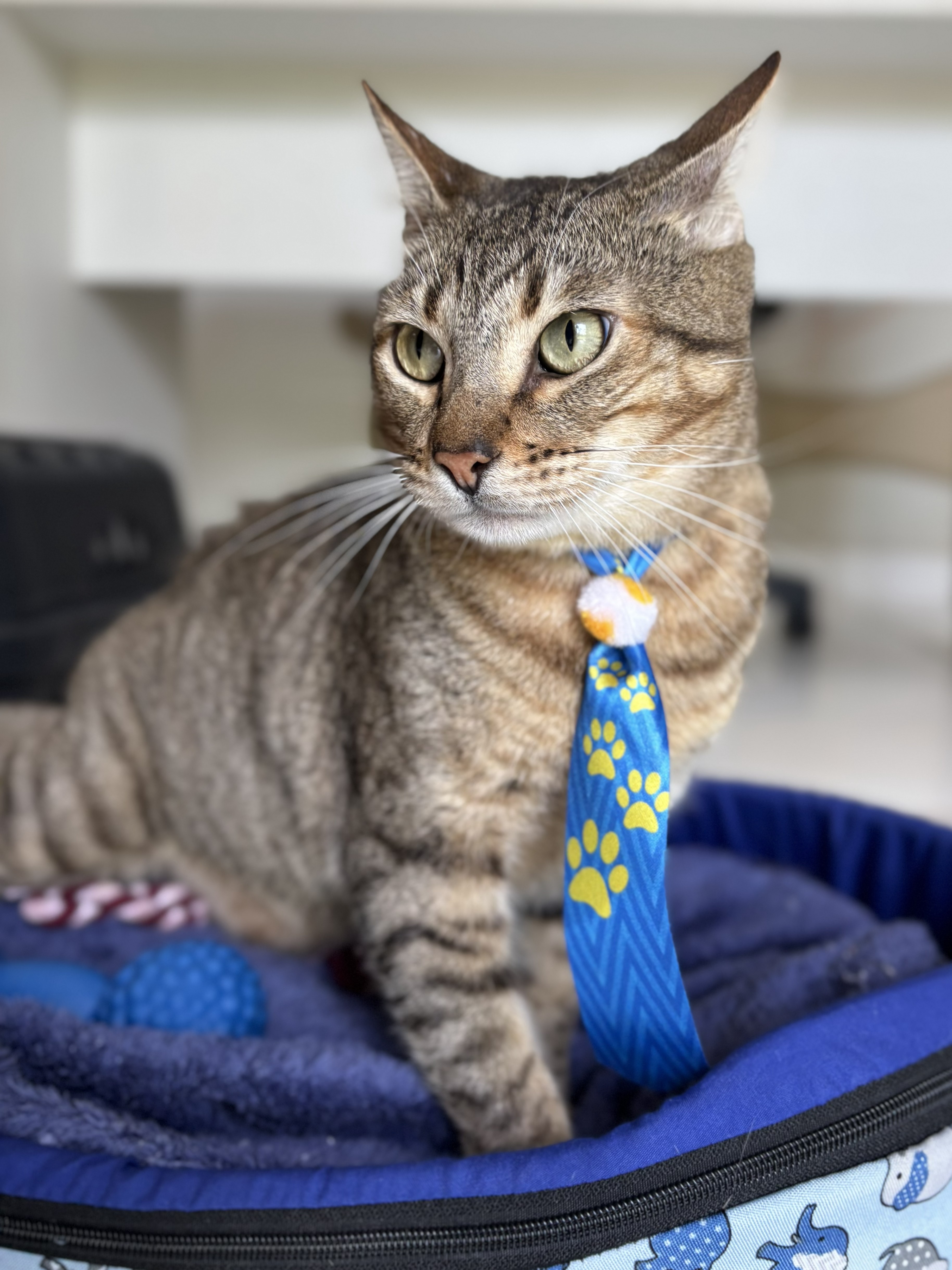 É uma adoção especial: precisa de ração urinária e de uma família com paciência e amor.